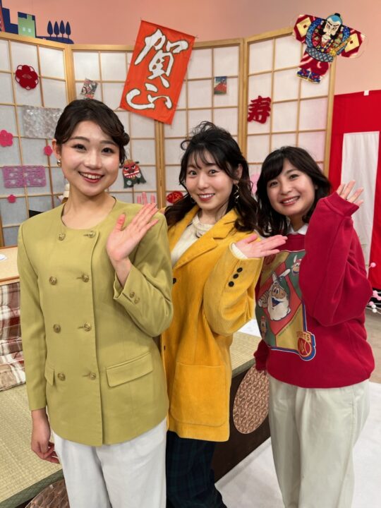 キャンディーズは今井アナ、徳岡アナに丁寧に教えてもらいました。