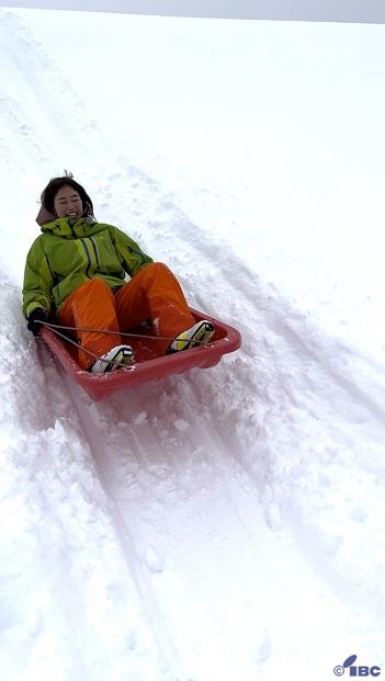 子どもたちとそり滑りに夢中になっていた稲村さん。