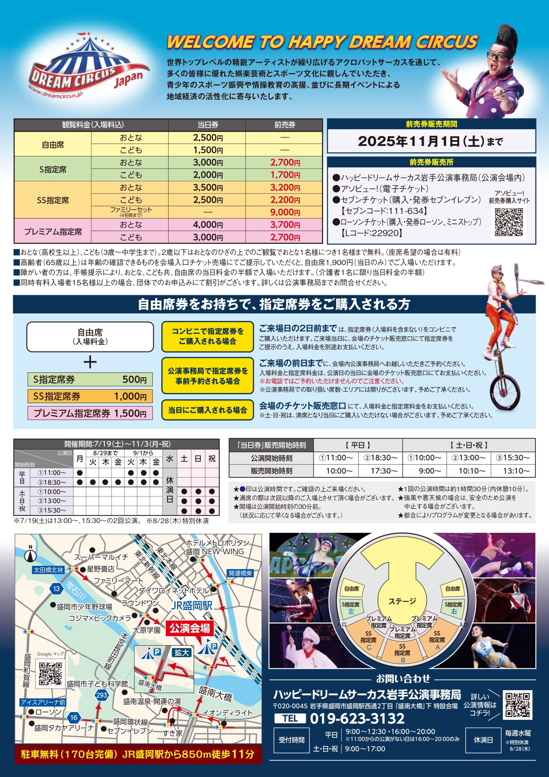 (平日9:00~12:30、16:00~20:00、土日祝9:00~17:00) 電話:019-623-3132 【外部サイト】ハッピードリームサーカス岩手公演HPへ |