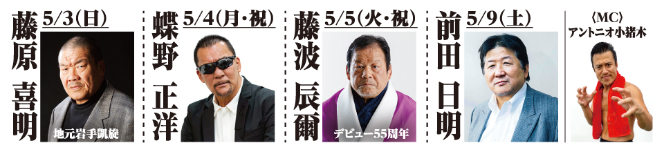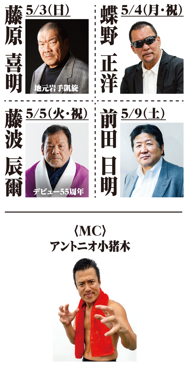 5月1日(金)~11日(月)の11日間、岩手県盛岡市にある『パルクアベニュー・カワトク』7F 展示場にて行われます。プロレスファン必見のラインナップに、ぜひご期待ください。