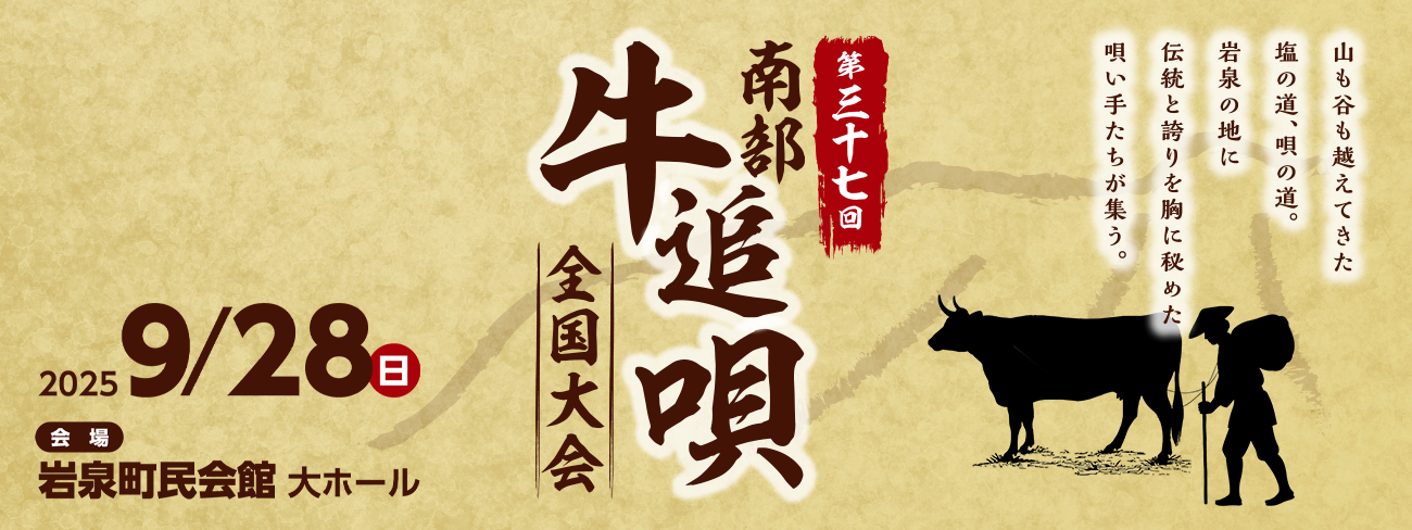 岩泉町では、毎年9月の最終週に「南部牛追唄全国大会」を開催し、南部牛追唄の普及向上と観光の振興に努めています。