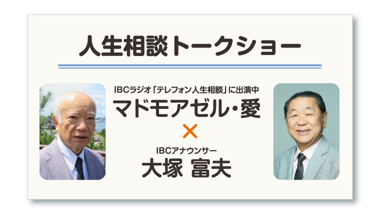 心のエッセイスト マドモアゼル・愛さんが”人生相談トークショー”でお応えします。