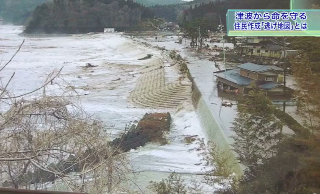 津波から避難する経路と時間がわかるようにした「逃げ地図」。正式には「避難地形時間地図」と言います。東日本大震災で大きな被害を受けた陸前高田市広田町で、住民たちがこの「逃げ地図」づくりを行ってきました。
