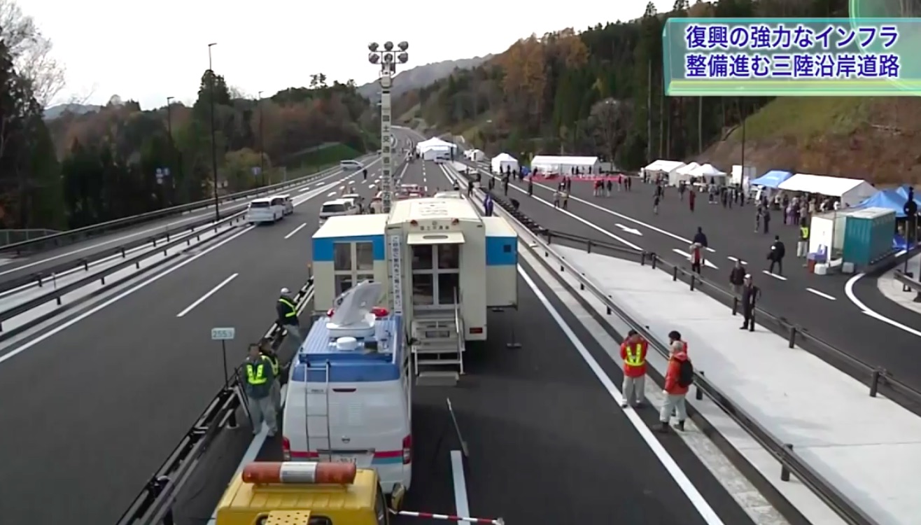 復興の基幹インフラとして整備が進む、三陸沿岸道路。被災地では青森県八戸市から岩手県を通り、宮城県仙台市までを縦に結ぶ三陸沿岸道路を「復興道路」、さらに宮古と盛岡、釜石と花巻を横に結ぶ自動車道を「復興支援道路」として位置づけ工事が行われています。