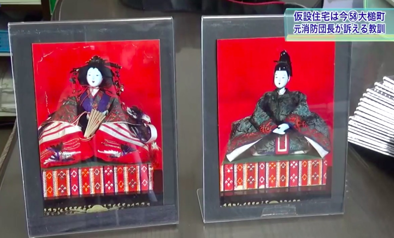 遺影は妻、昌子さん、義理の母、タマさん、長男、隆之さんです。消防団長だった煙山さんはあの日、昌子さんが用意した半纏を着て出かけました。商店を兼ねた自宅に家族を残し、逃げるよう呼びかけなかったことを後悔しています。