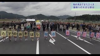 9月29日、かさ上げ工事で整備された陸前高田の中心市街地を横断する「高田南幹線」と「館の沖橋」の開通を祝うセレモニーが行われました。地元の保育園児らが、市の関係者と一緒に元気に渡り初めをしました。まちの復興が大きく一歩進んだ節目を祝う「まちびらき」のはじまりです。
