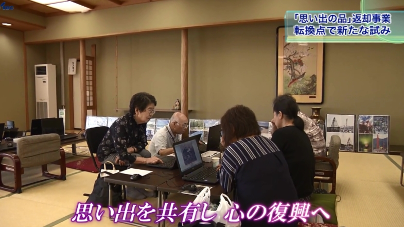 この日も、開催を待っていた人たちが次々と会場を訪れ、家族や知人の写真がないかとパソコンの画面に見入っていました。中には昼食を持参し、朝から夕方まで一日をこの場所で過ごす人もいると言います。