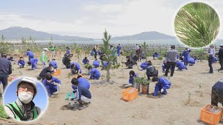 5月18日。陸前高田市の高田松原で行われた植樹会です。地元・高田高校の生徒やボランティアが参加して、50センチほどのクロマツの苗木、250本を植えました。震災の津波で失われた松林を再生するための最後の植樹会です。