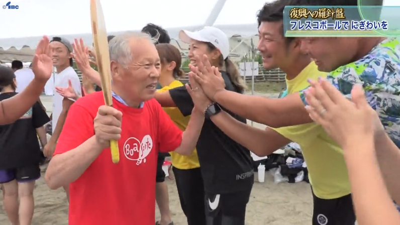 ラリーを通して互いの健闘を称えあうビーチスポーツ、「フレスコボール」の公式大会が、岩手県陸前高田市で開催されました。震災の津波被害から復活した高田松原海水浴場を、ビーチスポーツのフレスコボールを通して盛り上げようという取り組みです。