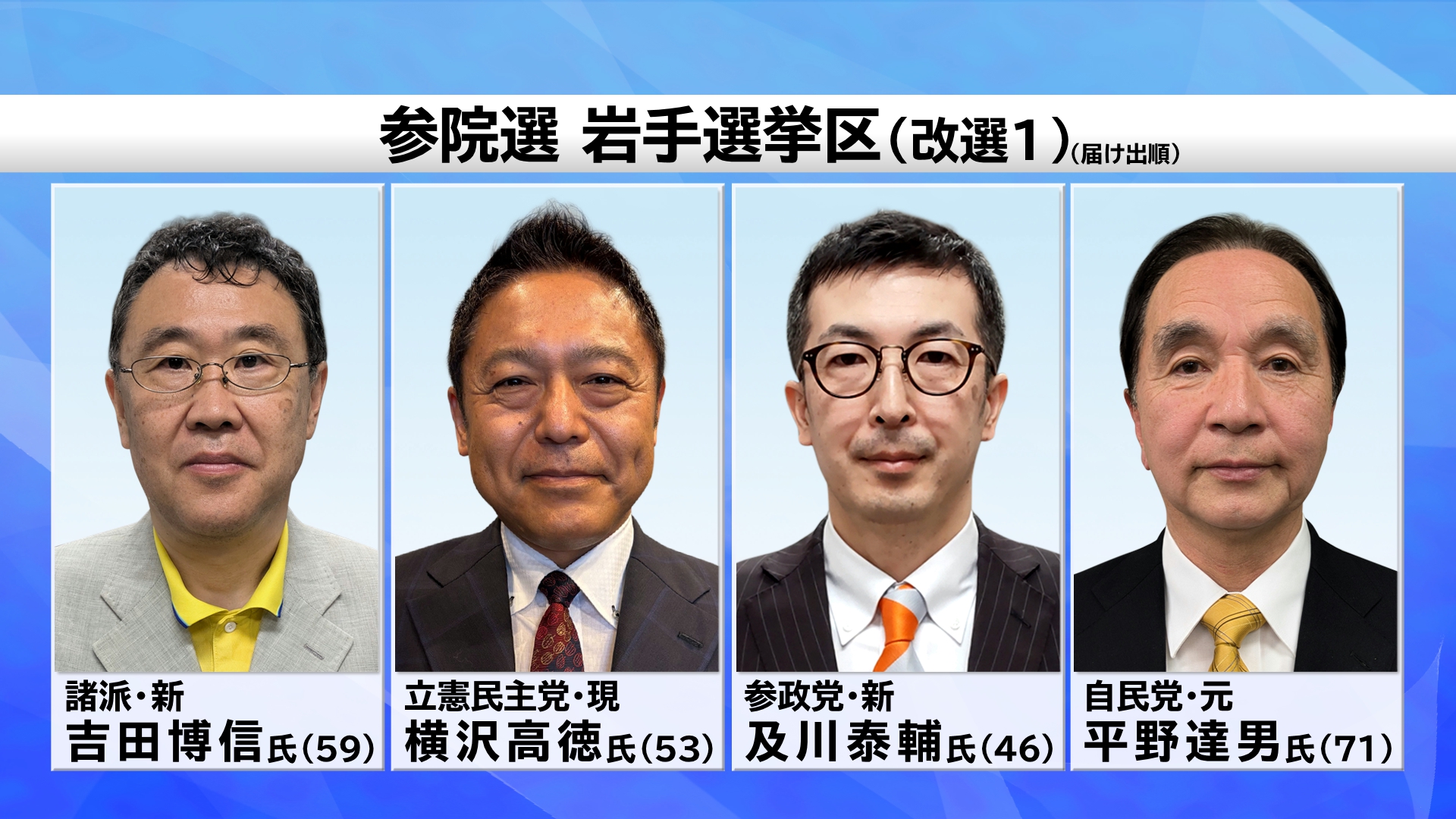 【岩手選挙区 立候補者】(届け出順・敬称略)