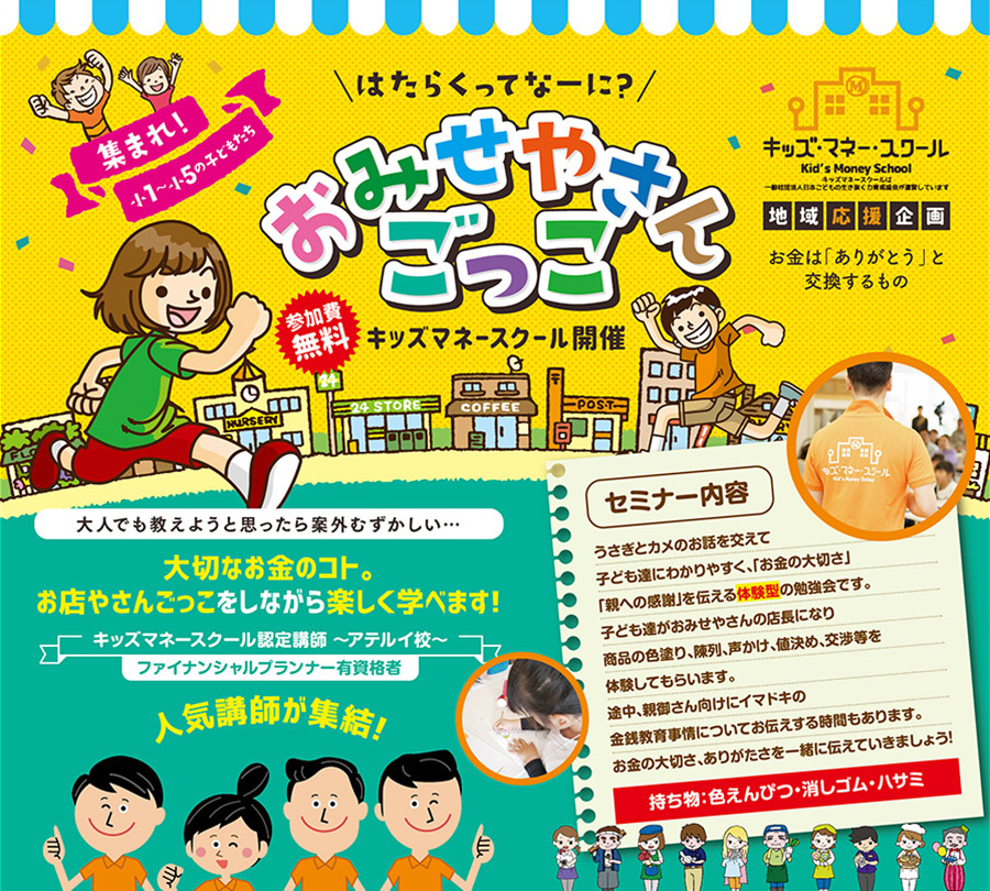「\はたらくってなーに?/おみせやさんごっこ」キッズマネースクールを開催致します。