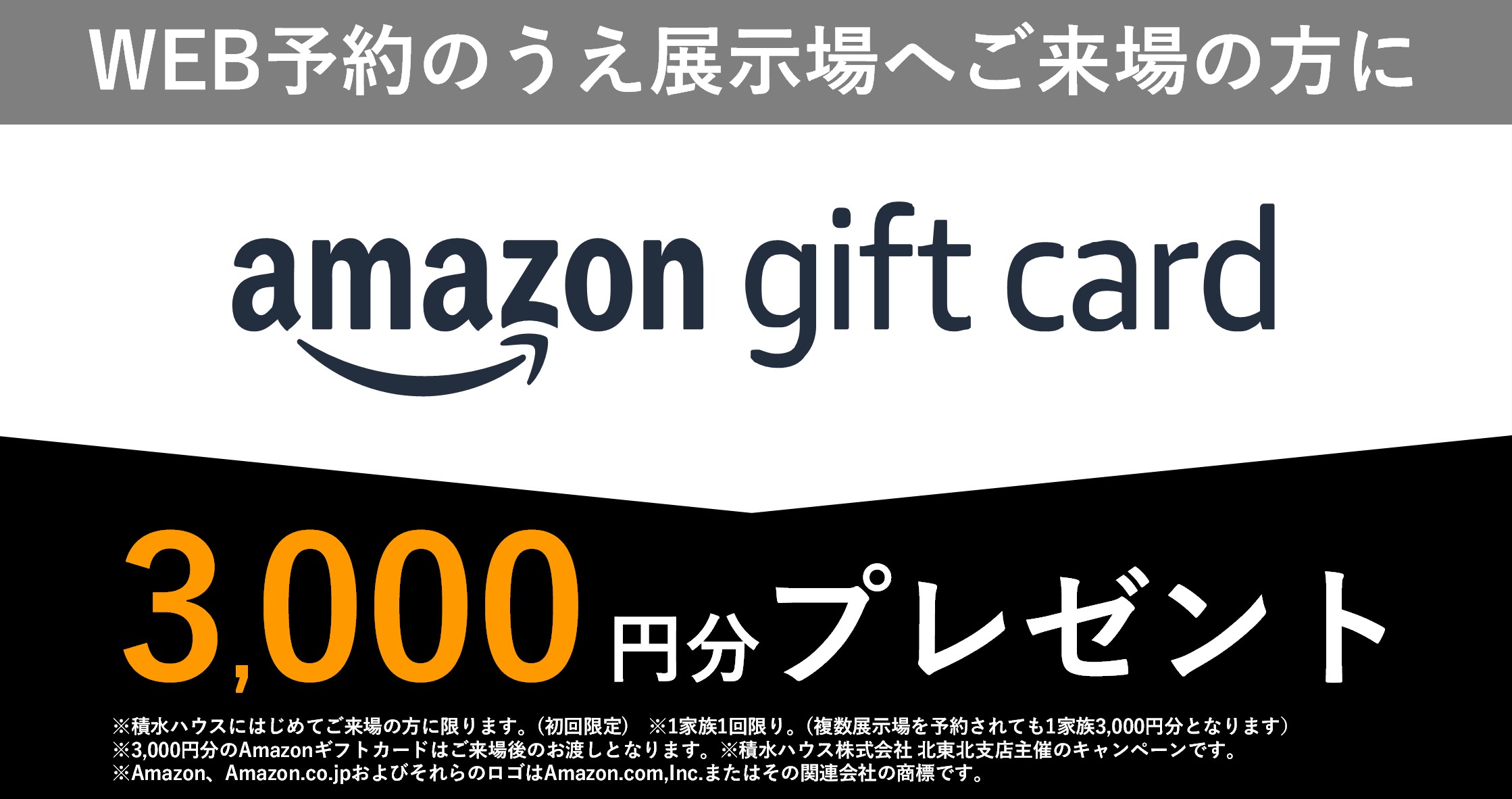 事前にWEB予約の上、積水ハウス展示場に初めてご来場の方にAmazonギフトカード3,000円分プレゼント!