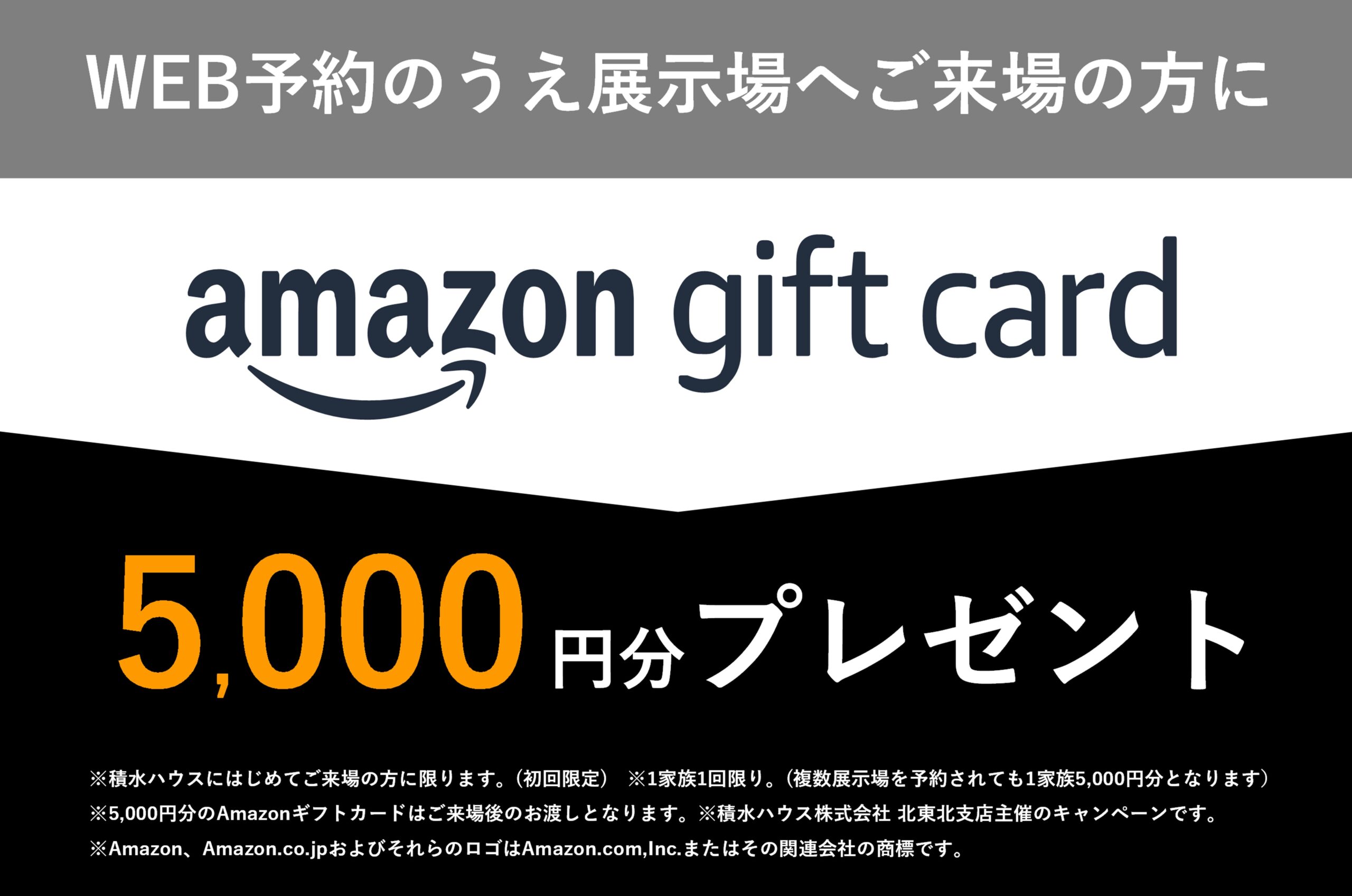 事前にWEB予約の上、積水ハウス展示場に初めてご来場の方にAmazonギフトカード5,000円分プレゼント!