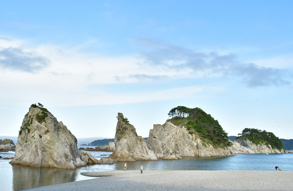 あれから8年4カ月余り。20日は浄土ケ浜の海開きで、今年も海水浴シーズンが到来する。がれき撤去のボランティアの協力もあって白い砂浜は輝きを取り戻し、レストハウスと海水浴場は2012年に再開した。レストハウス付近には震災後、避難路が新たに整備された。