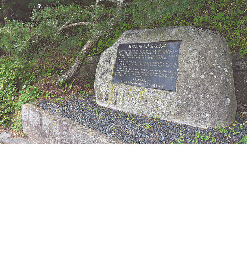 峠は海抜30メートル以上。長い歴史の中で、津波の脅威はさまざまな形で地域に刻み込まれる。