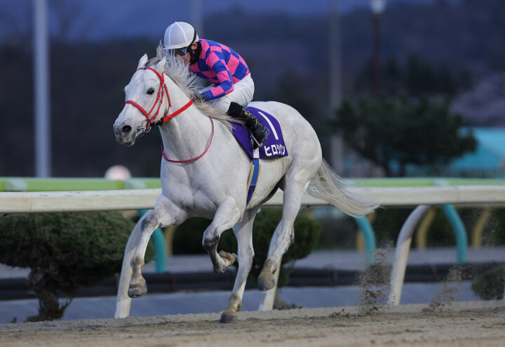 4月12日(日)のメイン赤松杯(OP・M3ダート1600m)は、1番人気のヒロシクンが定評の逃げ脚を発揮し、後続に4馬身差をつけて連覇を達成しました。