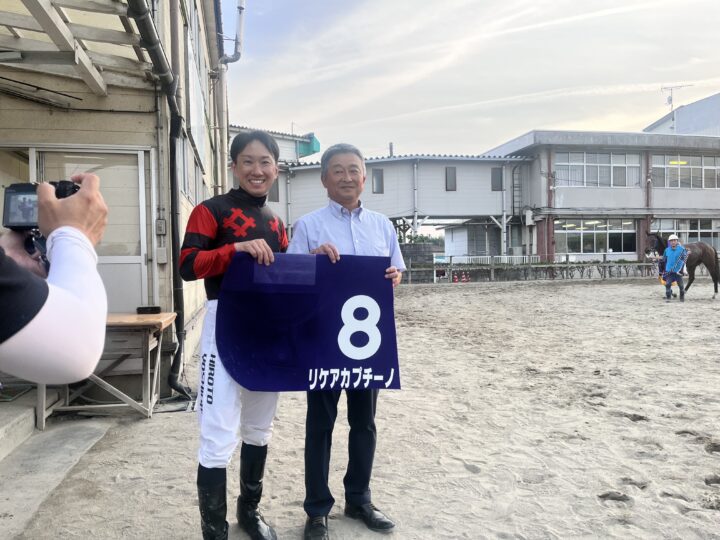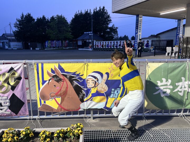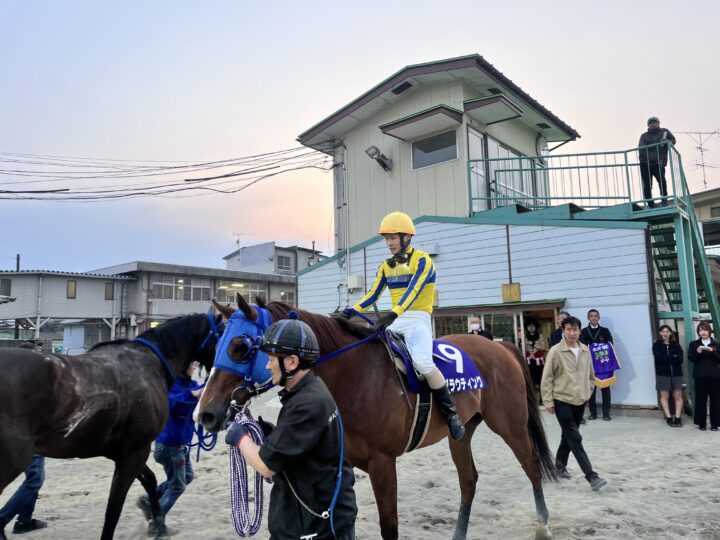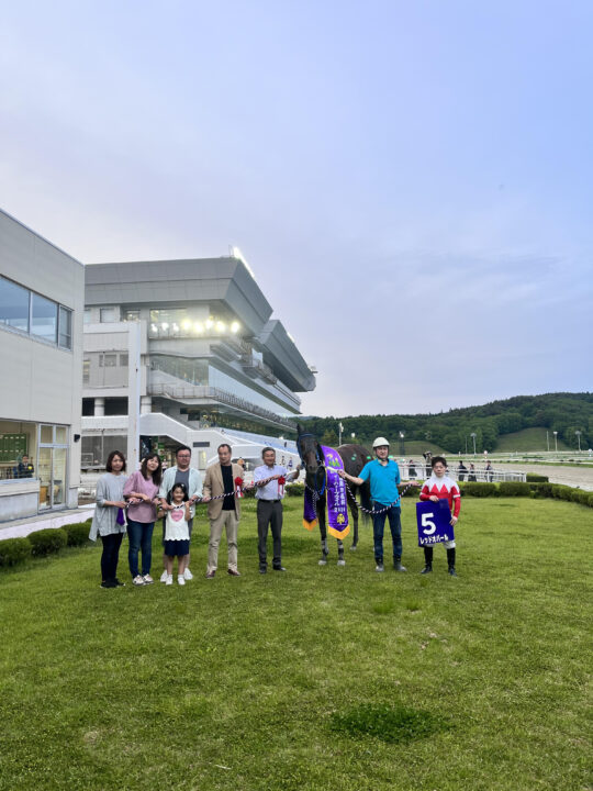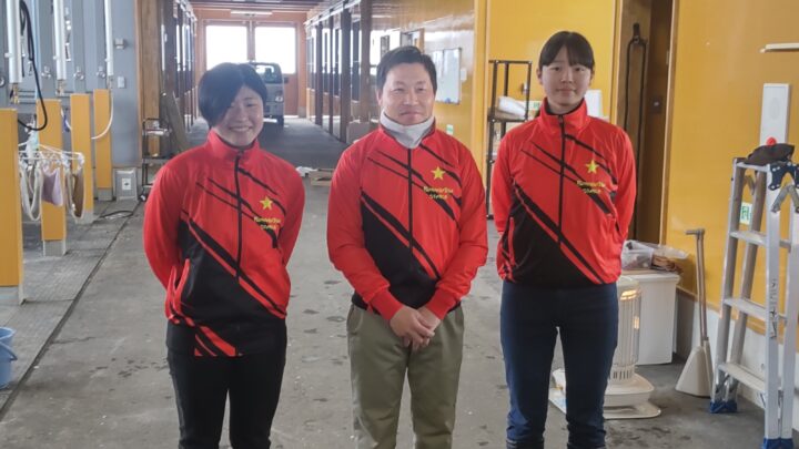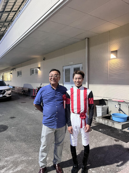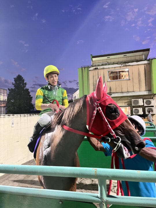 10日の月曜日・第1レース、単勝2番人気だったスピードスター号で勝利を収めました。陶文峰厩舎には開業準備中の2月に盛岡競馬場の厩舎で訪れましたが、スタッフの服を騎手時代の勝負服をモチーフとしたジャンパーで統一、赤を基調としたその姿は大変目立ちます。まずは順調にスタートを切った陶厩舎に注目しましょう。
