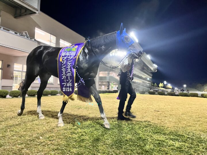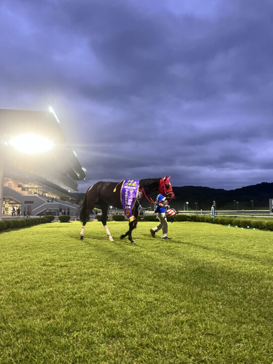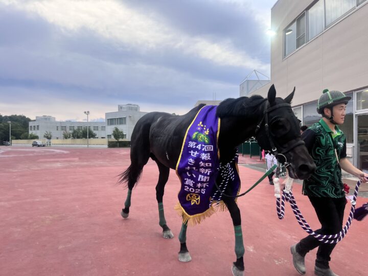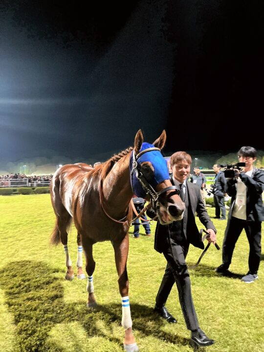 波乱の主役を務めたのは6番人気のスプラウティングで、騎乗した塚本涼人騎手は嬉しい重賞初制覇となりました。