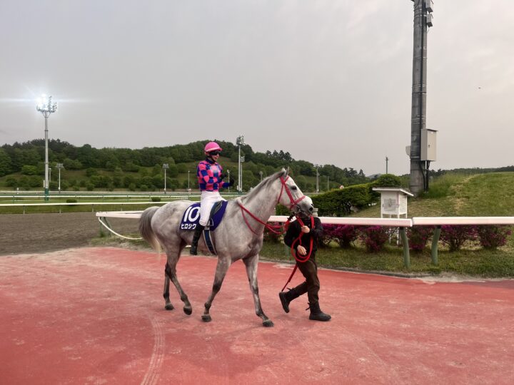果しました。3着には5番人気のシンヨモギネスが入り、以下ヘリオス、ライアンが続きましたが、レースの印象を一言でいえばヒロシクンの完勝でした。小回り水沢のスピードの出る馬場で、