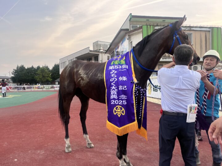 9月2日のjpnⅡ不来方賞は直前の雨で不良馬場の中行われ、戸崎圭太騎乗、JRA=中央競馬所属のナルカミが大外からハナを奪うと後続勢の追い上げを封じ、1番人気に応えました。
