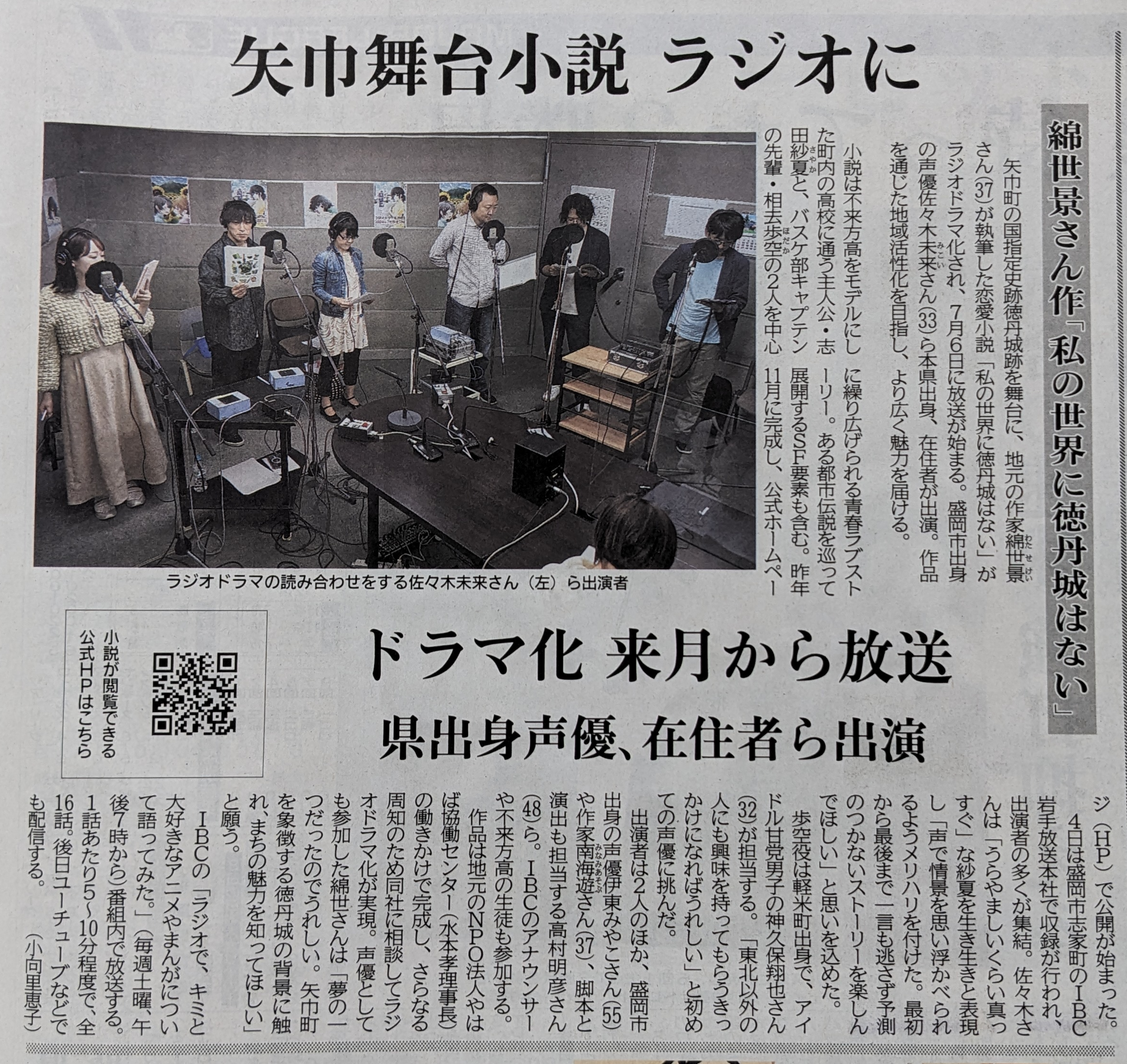 ラジオドラマ「私の世界に徳丹城はない」の制作始まる 盛岡市出身の声優・佐々木未来さんや原作者の綿世景さんも出演 7月からIBCラジオで放送