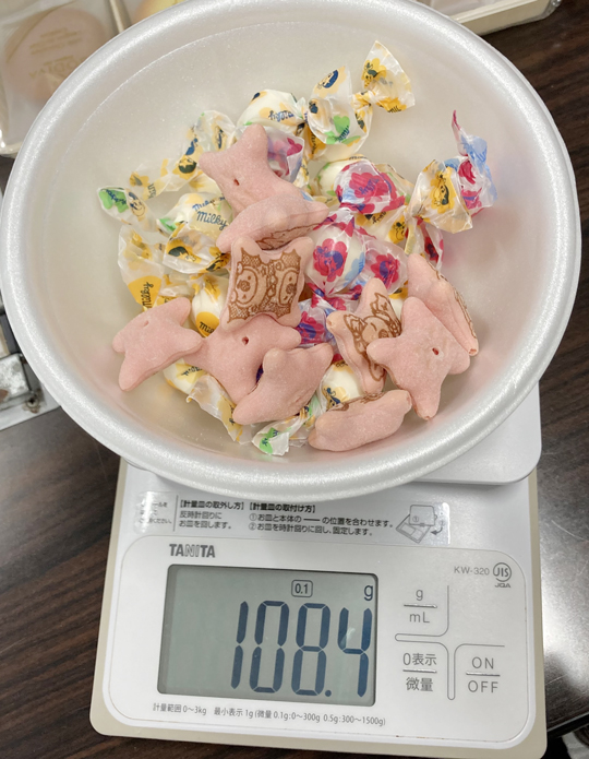 ※1個の重さは約4グラムですが、ほかのお菓子も10個混ざっています!!