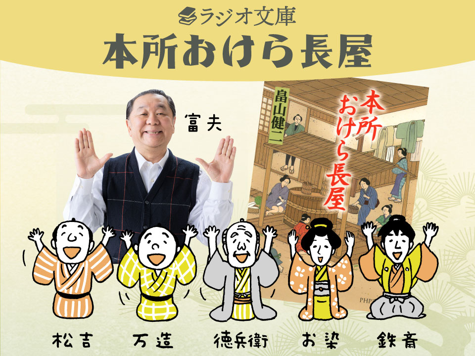 大人気時代小説シリーズの新章開幕!畠山健二作「新 本所おけら長屋」をラジオ化。 長崎留学に行っていた万造とお満が本所亀沢町の貧乏長屋に戻ってきた。万造、松吉の「万松」コンビをはじめ個性あふれる面々の人情味あふれる活躍をお送りする。
