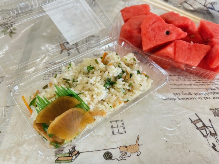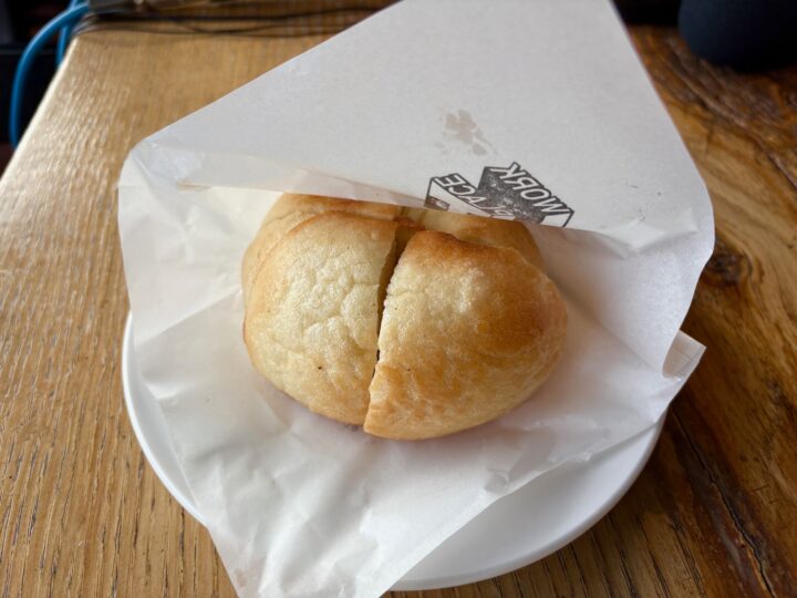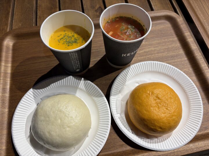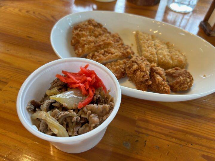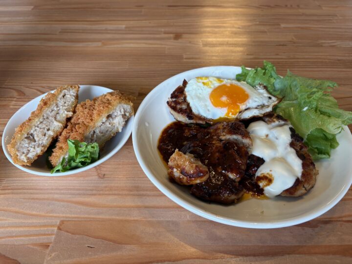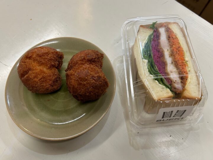 お肉も野菜もたっぷりボリューミーな「ベジカツサンド」と、子どものおやつ・コーヒーのお供にぴったりの「サーターアンダギー」をいただきました!