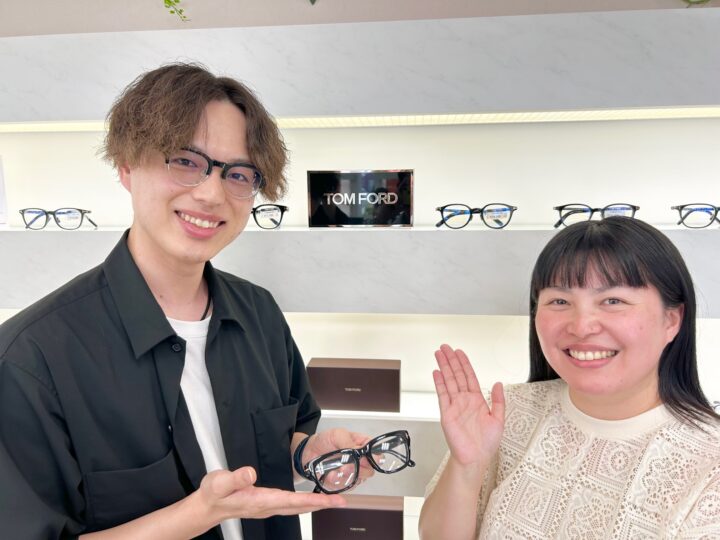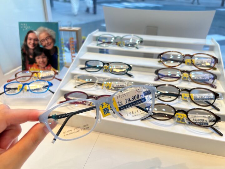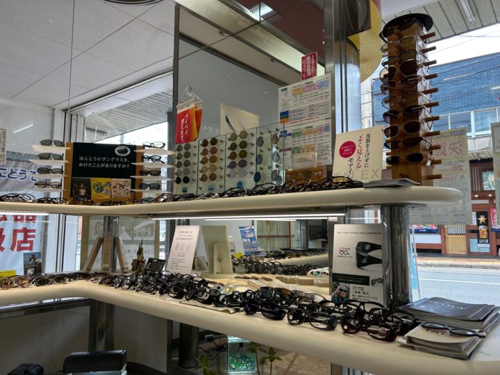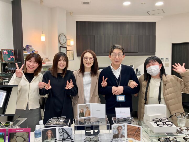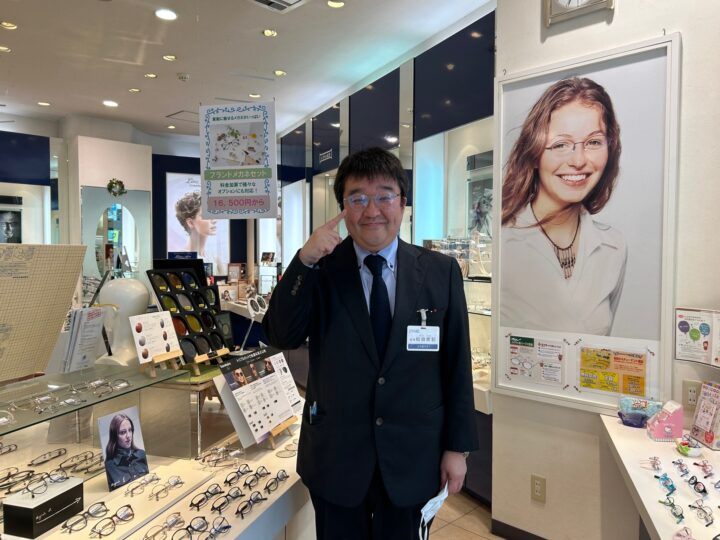注目されているというフチなしメガネの話や、セールでお安くなる軽いフレームのメガネ・遠近両用メガネについてなど、最新事情をお聞きできました◎