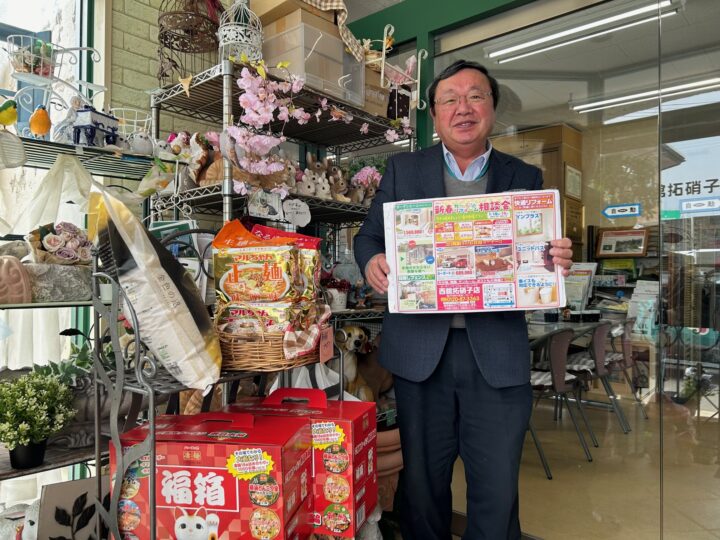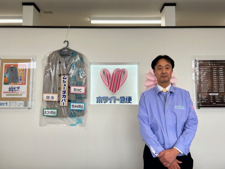 藤村和俊さんに、春のクリーニング半額セールと、今月オープンするコインランドリーのご案内をしていただきました!