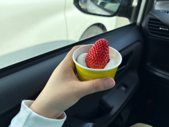 紫波町の食材を使った、こだわりのメニューが揃う中《もっちりハムカツソフト》をいただきました😋(本商品は紅白のワッフルコーンで提供されます!)