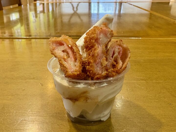 牛乳ソフトと、サクサク衣とヒメノモチの美味しさが楽しめるハムカツが出会いました_____インパクト抜群です😲笑