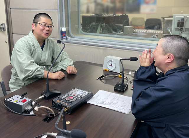 破石晋照(はせき・しんしょう)さんと南洞法玲(なんとう・ほうれい)さんは同級生のお坊さんコンビ。奥州藤原氏の栄華を伝える世界遺産の町、岩手県平泉町にある中尊寺と毛越寺の支院にそれぞれ生まれ育ちました。漫才のような法話スタイルが評判を呼び、ラジオ番組を持つことに。リスナーからの質問や相談に答えながら、平泉のことや人生のことなどざっくばらんにおしゃべりしています。多趣味で話題豊富な二人。常連リスナーからは「煩悩のちらつくラジオ」とも呼ばれています。