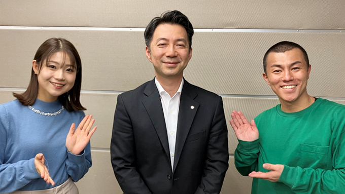 △左:徳岡アナ、中央:見木太郎さん、右:よこっちピーマン