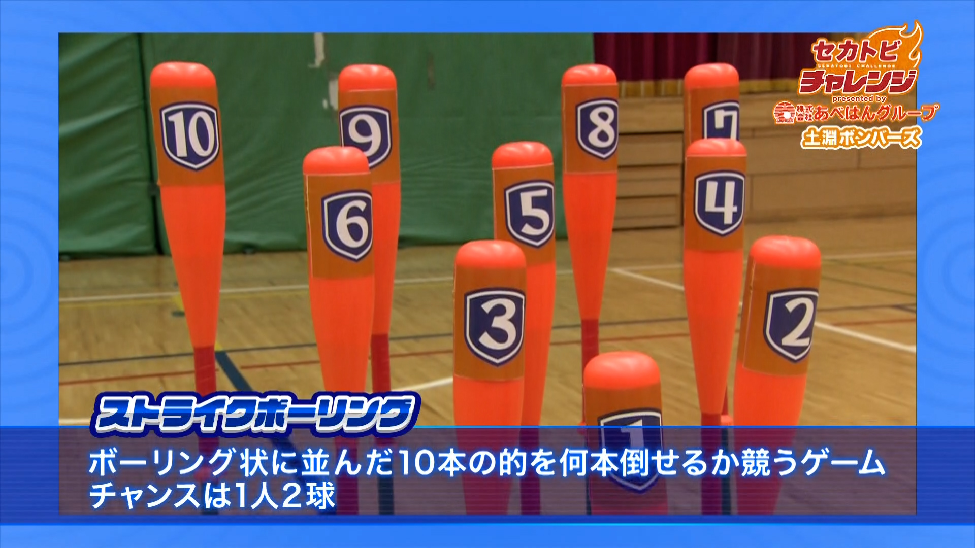 土淵ボンバーズが投げたボールで10本の的を倒す『ストライクボーリング』に挑戦!