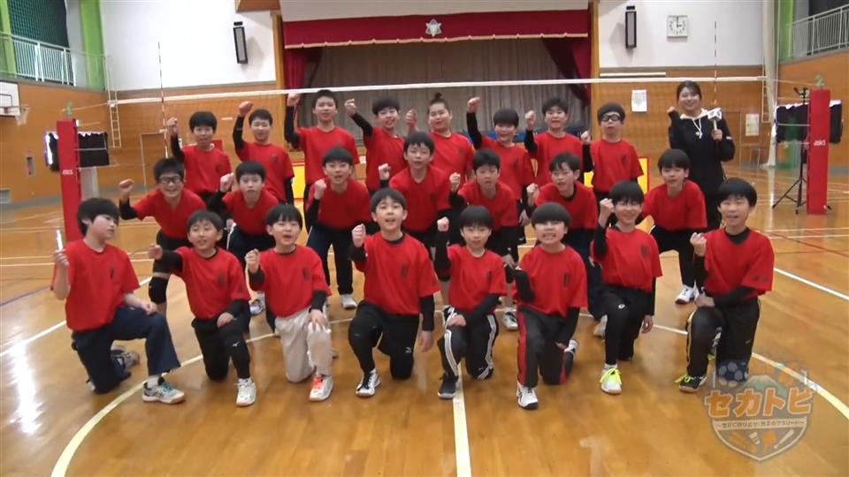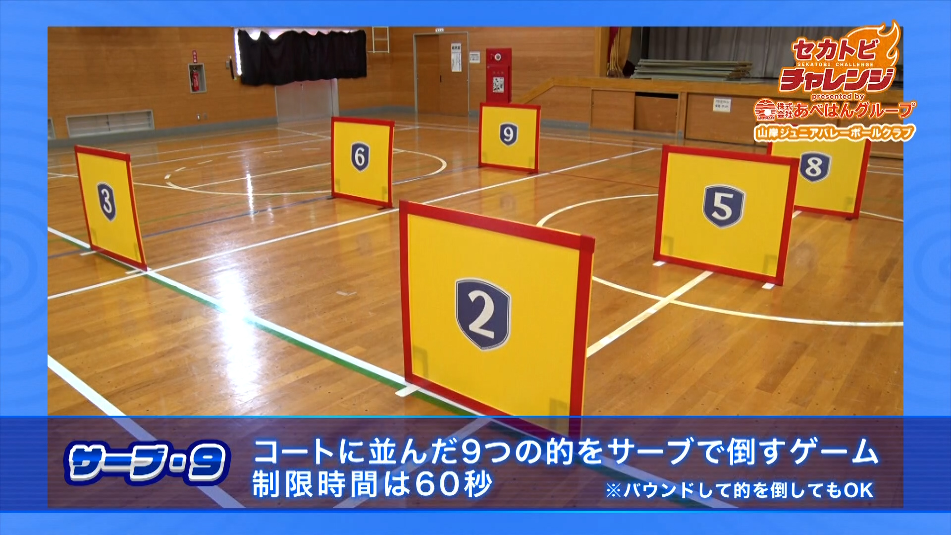 山岸ジュニアバレーボールクラブがコートに並んだ9つの的をサーブで倒す『サーブ・9』に挑戦!
