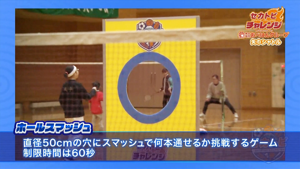 矢巾シャトルが直径50cmの穴にスマッシュでシャトルを通す『ホールスマッシュ』に挑戦!