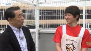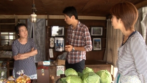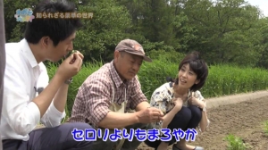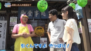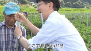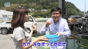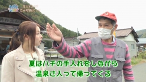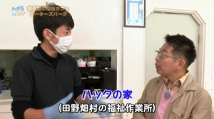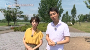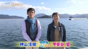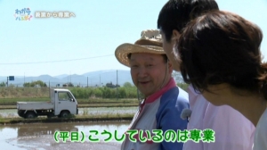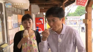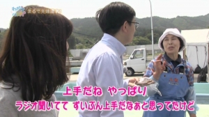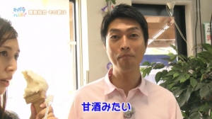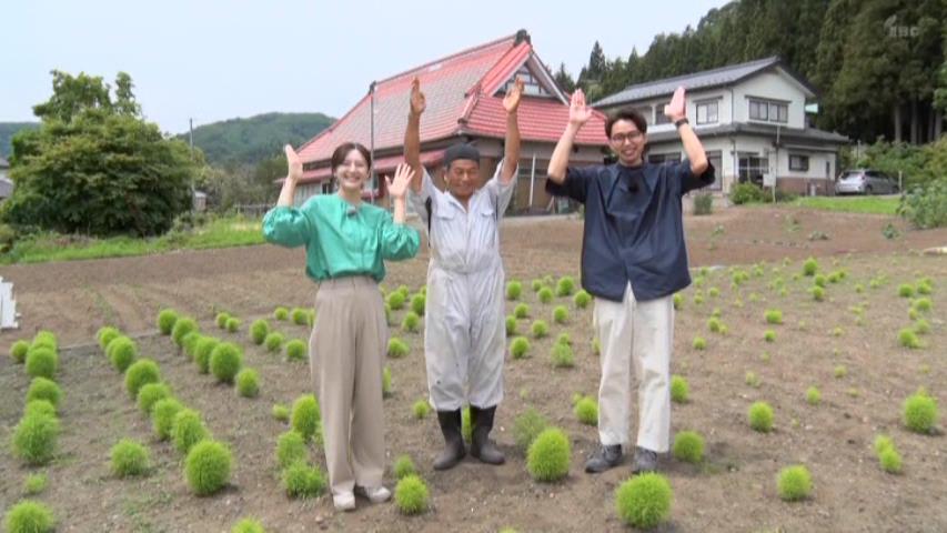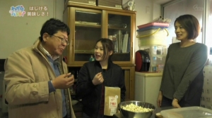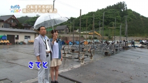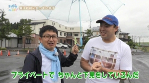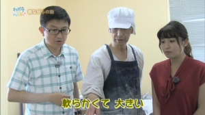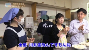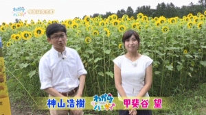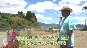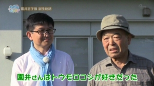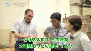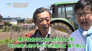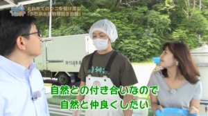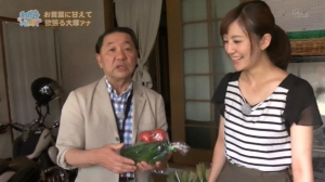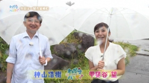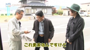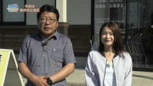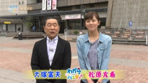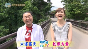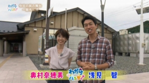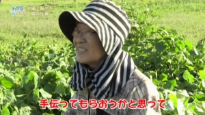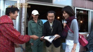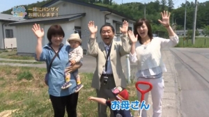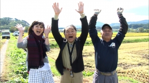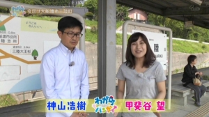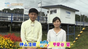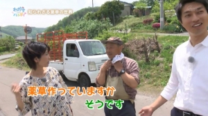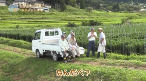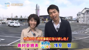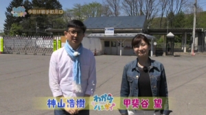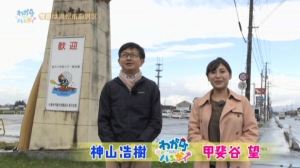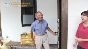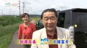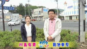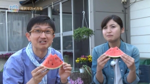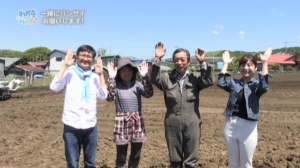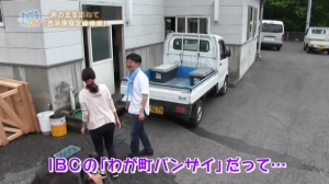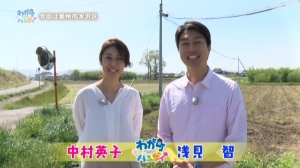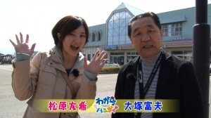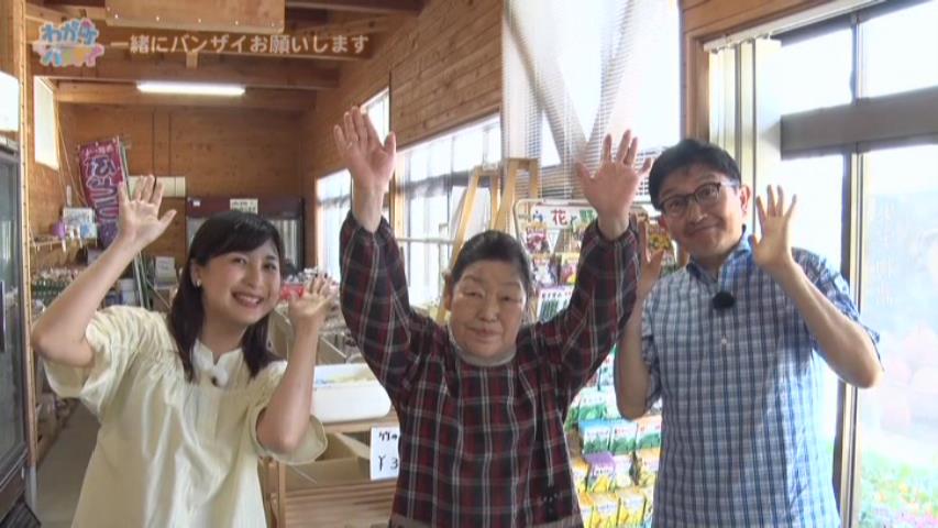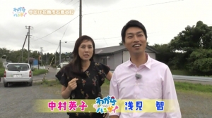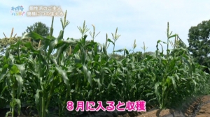 第3回のわが町で、松原アナ・大塚アナが訪れた場所でもありますが、今回は冨田が大塚アナとお邪魔しました。前にお世話になった方から、「松原アナが植えたトウモロコシです。」と、立派に実ったトウモロコシを頂きました!帰社して松原アナに渡すと、とても喜んでいました!