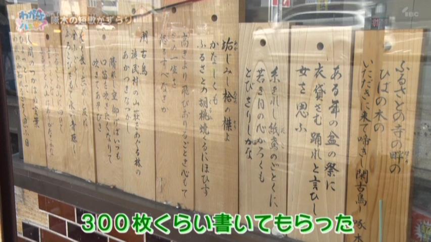 ひとつが啄木の短歌。かつては板にして各家庭や商店に飾る取り組みがあった