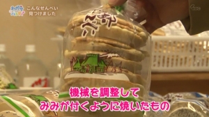 見えにくくなっていますが、歌舞伎揚には本当に歌舞伎の家紋が刻印されているそうです。