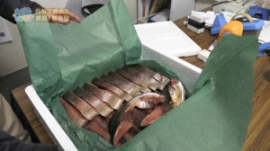 旧役場前で出会った青年から教えてもらって彼らの工房を訪ねると、いまだ仮設暮らしを余儀なくされているメンバーが色んな思いを込めて木工品を作っていた。「10年、20年先を見据えて、町の産業になるように」というのを聞いて、「自分達の未来を作っているんだ…!」と思ったね。東大海洋研で見たウミガメ。このあたりの海を回遊しているんだって。はるばる何百キロも泳いでくるなんて、「ひょうたん島」がある大槌の海には、「何かがきっと待っている」に違いない!
