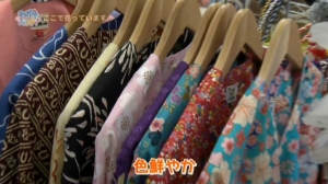 そして着物屋さんではまだ仕立て前の反物を当てていただきました~!