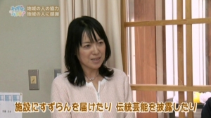 今回は一関市川崎町にお邪魔しました。当日は大変暑い日でしたが、みなさんとても元気!とくにグラウンドゴルフ大会に参加されたみなさんは強い日差しの中にも関わらず、はりきりプレー続出でした。豊かな自然を示すメダカ米や、地元野菜バイキングのお店など川崎には地元の自慢がいっぱい。そして大漁旗を専門にする染物屋さんでは、長い年月で培われた沿岸との絆を垣間見せてもらいました。みなさんたくさんのお話本当にありがとうございました。